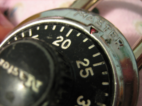 Sitting here with my daughter as she practices — and masters — her GYM LOCK (oh, excuse me, P.E. lock). Takes me right back to 6th grade. AHHH! The stress of the number combination — to the right, to the left, past the number to the second number, back exactly to the last number. Quickly . . . Quickly . . . QUICKLY! . . . because I only have 2 more minutes to change — in front of everyone! The joys of middle school. Who can forget them?